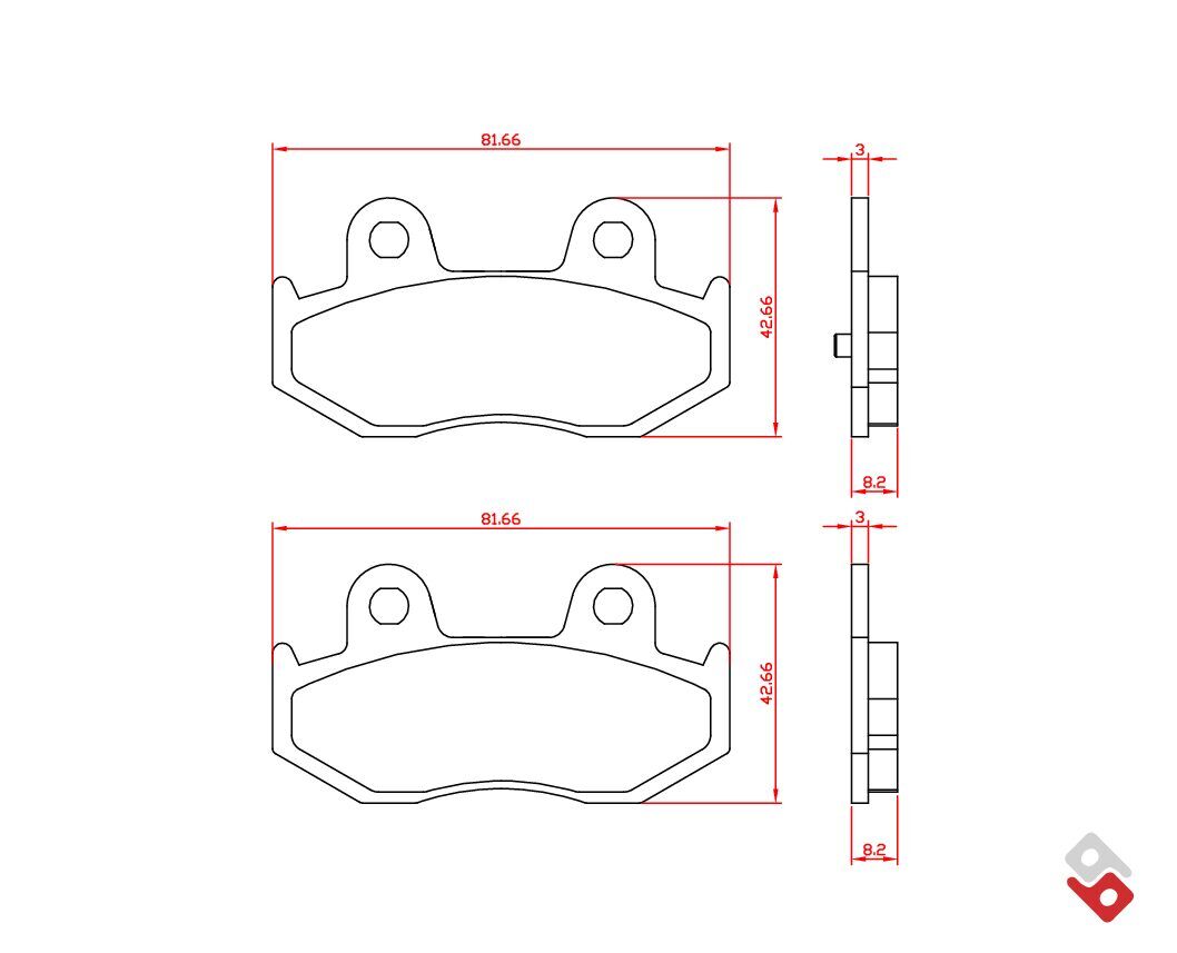 Brenta's sintered compound is copper-based and free of ferrous metals. Braking is very linear with a friction coefficient that fluctuates between 0.45 and 0.75 depending on the operating temperature and operating pressure. The ideal operating temperature is at around 200°C to 350°C. Braking has a linear bite (response to the first touch of the lever) and the performance is effective and progressive. It is not suitable for use on track with large displacement motorcycles. This product is ECE R90 approved.