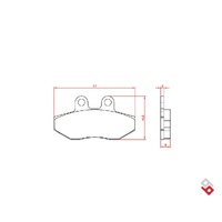 Brenta's sintered compound is copper-based and free of ferrous metals. Braking is very linear with a friction coefficient that fluctuates between 0.45 and 0.75 depending on the operating temperature and operating pressure. The ideal operating temperature is at around 200°C to 350°C. Braking has a linear bite (response to the first touch of the lever) and the performance is effective and progressive. It is not suitable for use on track with large displacement motorcycles. This product is ECE R90 approved.