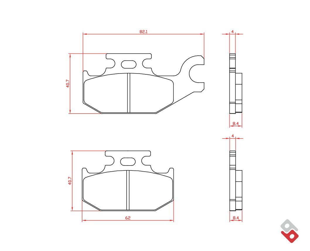 Brenta's sintered compound is copper-based and free of ferrous metals. Braking is very linear with a friction coefficient that fluctuates between 0.45 and 0.75 depending on the operating temperature and operating pressure. The ideal operating temperature is at around 200°C to 350°C. Braking has a linear bite (response to the first touch of the lever) and the performance is effective and progressive. It is not suitable for use on track with large displacement motorcycles. This product is ECE R90 approved.