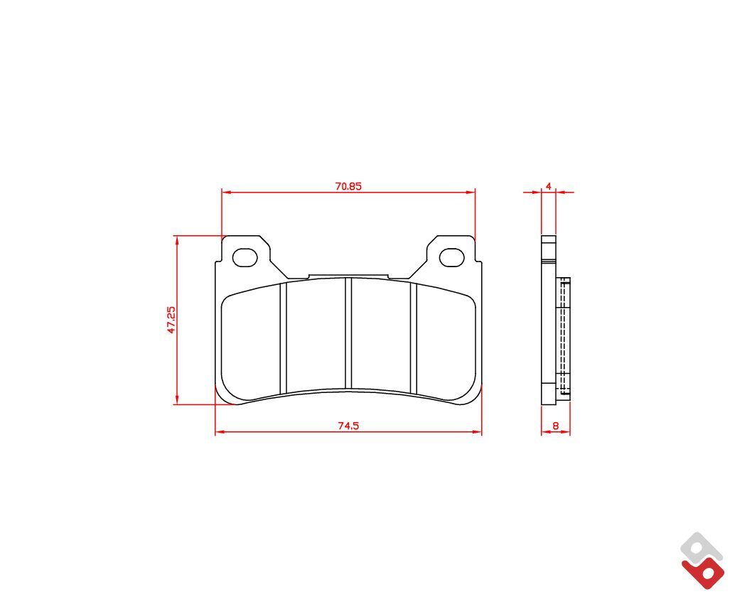 Brenta's sintered compound is copper-based and free of ferrous metals. Braking is very linear with a friction coefficient that fluctuates between 0.45 and 0.75 depending on the operating temperature and operating pressure. The ideal operating temperature is at around 200°C to 350°C. Braking has a linear bite (response to the first touch of the lever) and the performance is effective and progressive. It is not suitable for use on track with large displacement motorcycles. This product is ECE R90 approved.