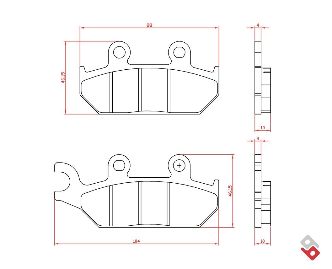 Brenta's sintered compound is copper-based and free of ferrous metals. Braking is very linear with a friction coefficient that fluctuates between 0.45 and 0.75 depending on the operating temperature and operating pressure. The ideal operating temperature is at around 200°C to 350°C. Braking has a linear bite (response to the first touch of the lever) and the performance is effective and progressive. It is not suitable for use on track with large displacement motorcycles. This product is ECE R90 approved.