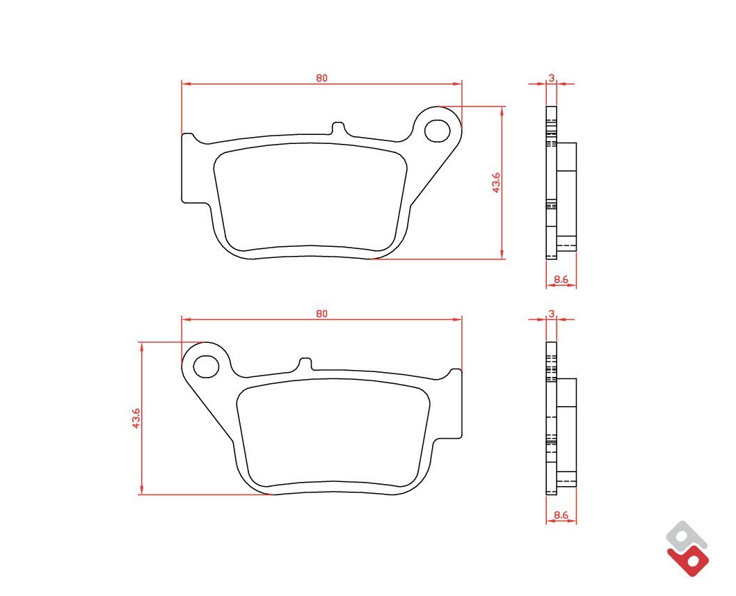 Brenta's sintered compound is copper-based and free of ferrous metals. Braking is very linear with a friction coefficient that fluctuates between 0.45 and 0.75 depending on the operating temperature and operating pressure. The ideal operating temperature is at around 200°C to 350°C. Braking has a linear bite (response to the first touch of the lever) and the performance is effective and progressive. It is not suitable for use on track with large displacement motorcycles. This product is ECE R90 approved.