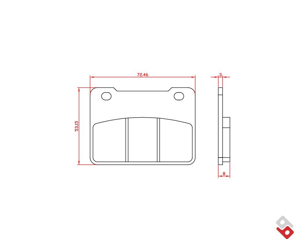 Brenta's sintered compound is copper-based and free of ferrous metals. Braking is very linear with a friction coefficient that fluctuates between 0.45 and 0.75 depending on the operating temperature and operating pressure. The ideal operating temperature is at around 200°C to 350°C. Braking has a linear bite (response to the first touch of the lever) and the performance is effective and progressive. It is not suitable for use on track with large displacement motorcycles. This product is ECE R90 approved.