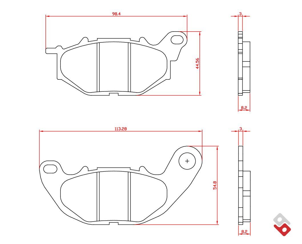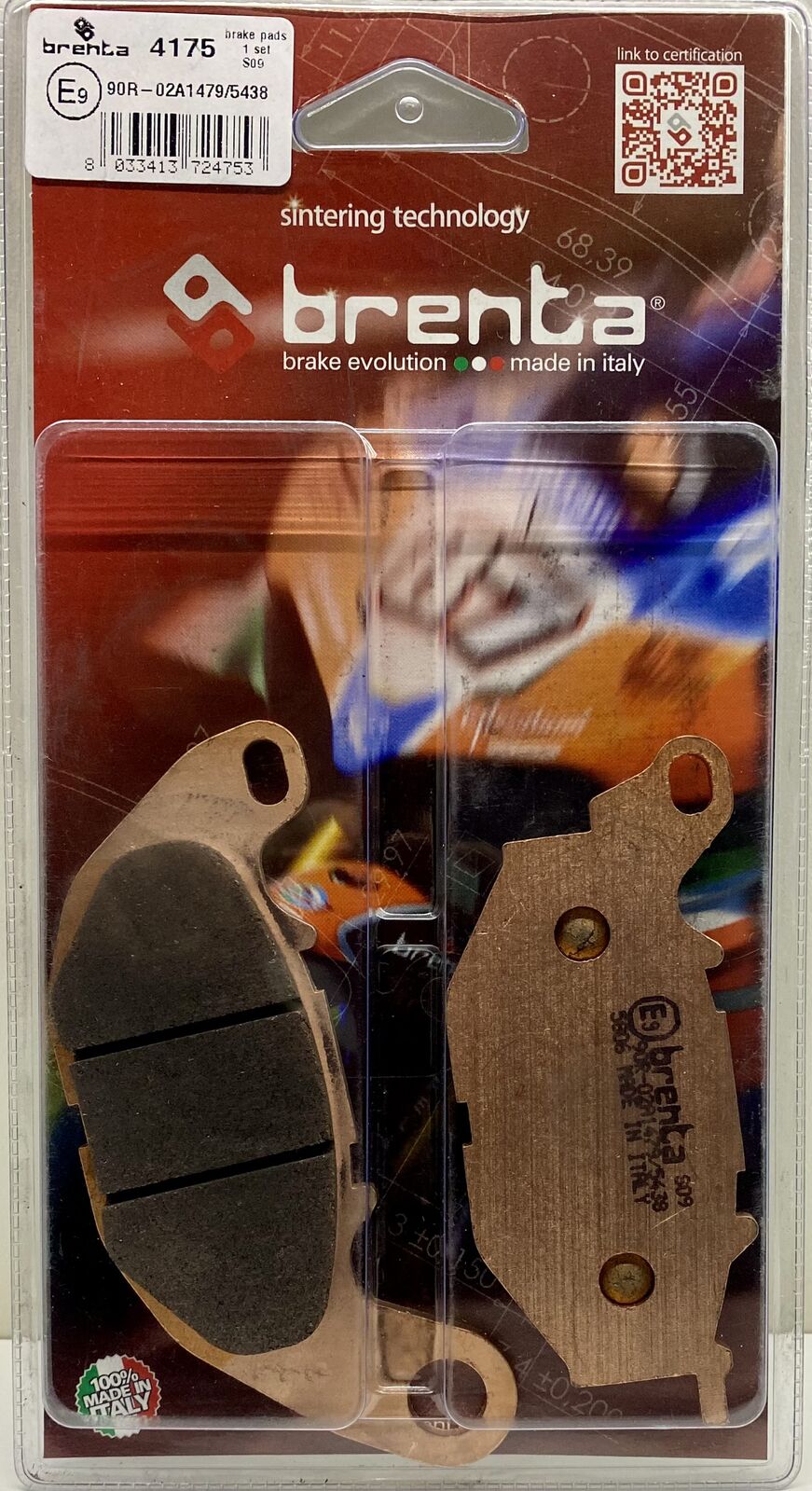 Brenta's sintered compound is copper-based and free of ferrous metals. Braking is very linear with a friction coefficient that fluctuates between 0.45 and 0.75 depending on the operating temperature and operating pressure. The ideal operating temperature is at around 200°C to 350°C. Braking has a linear bite (response to the first touch of the lever) and the performance is effective and progressive. It is not suitable for use on track with large displacement motorcycles. This product is ECE R90 approved.