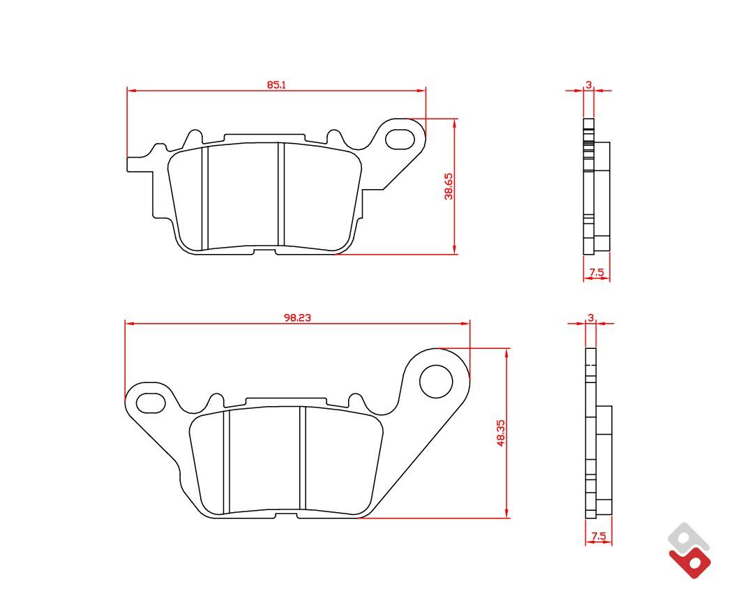 Brenta's sintered compound is copper-based and free of ferrous metals. Braking is very linear with a friction coefficient that fluctuates between 0.45 and 0.75 depending on the operating temperature and operating pressure. The ideal operating temperature is at around 200°C to 350°C. Braking has a linear bite (response to the first touch of the lever) and the performance is effective and progressive. It is not suitable for use on track with large displacement motorcycles. This product is ECE R90 approved.