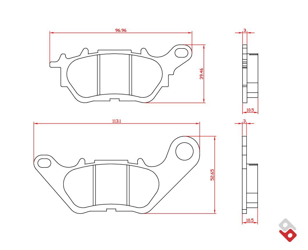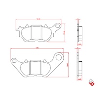 Brenta's sintered compound is copper-based and free of ferrous metals. Braking is very linear with a friction coefficient that fluctuates between 0.45 and 0.75 depending on the operating temperature and operating pressure. The ideal operating temperature is at around 200°C to 350°C. Braking has a linear bite (response to the first touch of the lever) and the performance is effective and progressive. It is not suitable for use on track with large displacement motorcycles. This product is ECE R90 approved.