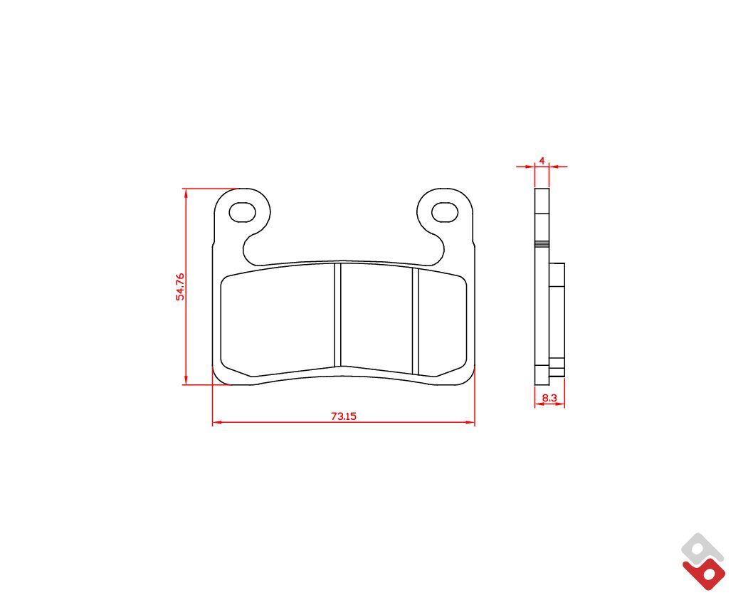 Brenta's sintered compound is copper-based and free of ferrous metals. Braking is very linear with a friction coefficient that fluctuates between 0.45 and 0.75 depending on the operating temperature and operating pressure. The ideal operating temperature is at around 200°C to 350°C. Braking has a linear bite (response to the first touch of the lever) and the performance is effective and progressive. It is not suitable for use on track with large displacement motorcycles. This product is ECE R90 approved.