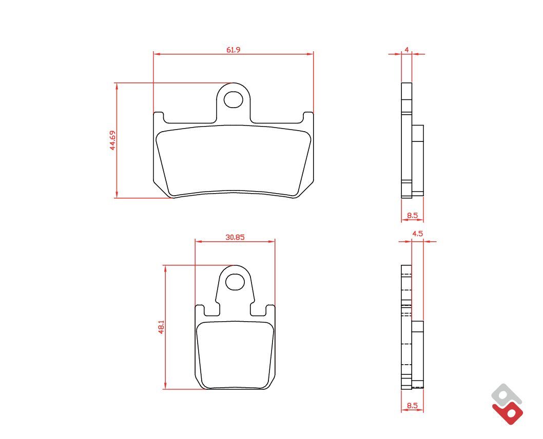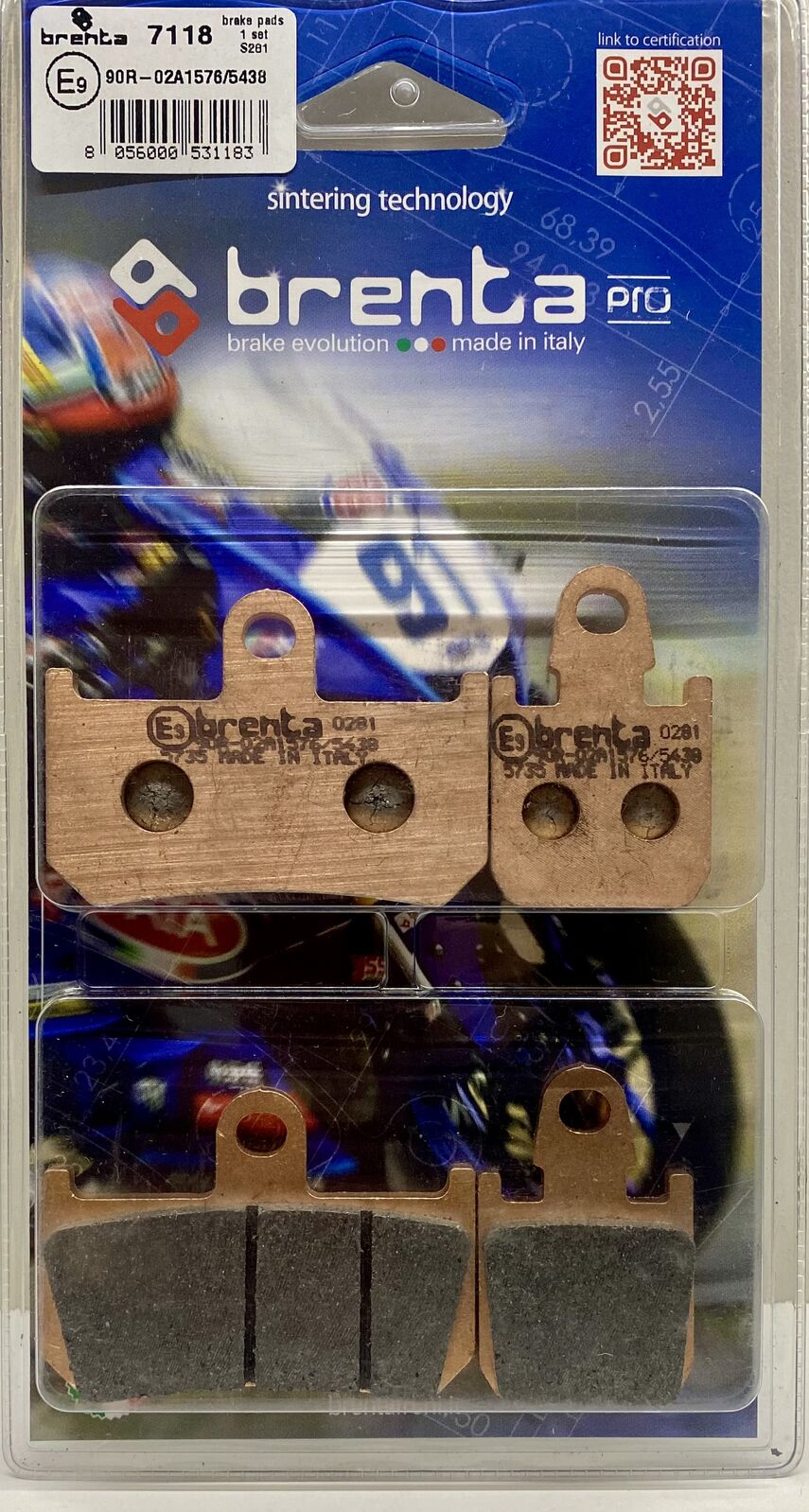 Brenta motorcycle brake pads - sintered PRO compound. This compound is specific for road and track use. The nickel-based mixture allows for excellent performance and resistance to stress. The first bite is more responsive than the sintered Series 4. The friction coefficient is between 0.5 and 0.8. The ideal operating temperature is between 200°C and 400°C. This product is ECE R90 approved.