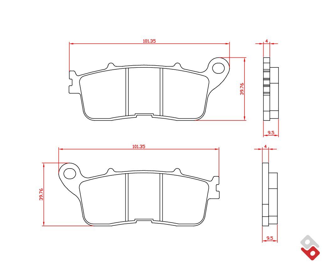 Brenta motorcycle brake pads - sintered PRO compound. This compound is specific for road and track use. The nickel-based mixture allows for excellent performance and resistance to stress. The first bite is more responsive than the sintered Series 4. The friction coefficient is between 0.5 and 0.8. The ideal operating temperature is between 200°C and 400°C. This product is ECE R90 approved.