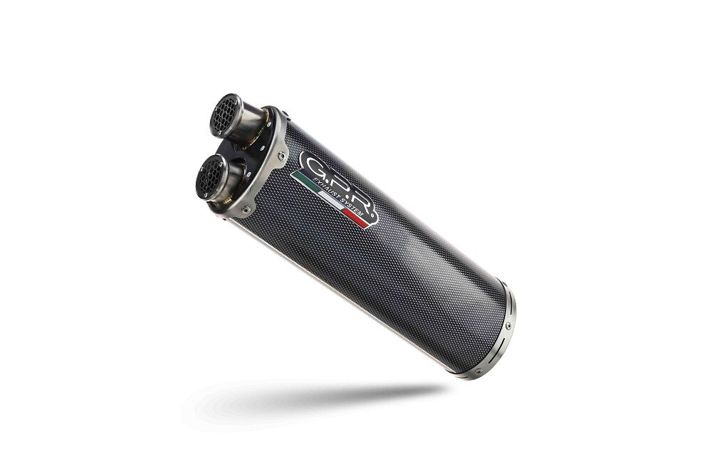 GPR developed the Dual Poppy exclusively for the enduro and grand touring bikes. It is made of 304 stainless steel with a carbon look finish and dual outlets. It has an elliptical shape that measures 100 MM x 130 MM. FEATURES • SOUND: Upgraded sound from stock exhaust • PERFORMANCE: Upgraded performance from stock exhaust • QUALITY: Italian made with high-grade welding • WEIGHT: Lighter than stock exhaust
