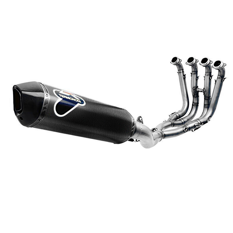 This complete 4-2-1 system features stainless-steel headers and a carbon-fiber slip-on silencer with a carbon end cap, providing the ideal combination of durability, lightness, and high-temperature resistance. The silencer includes a welded DB-Killer and a metal Termignoni logo, showcasing both attention to detail and authentic Italian design.