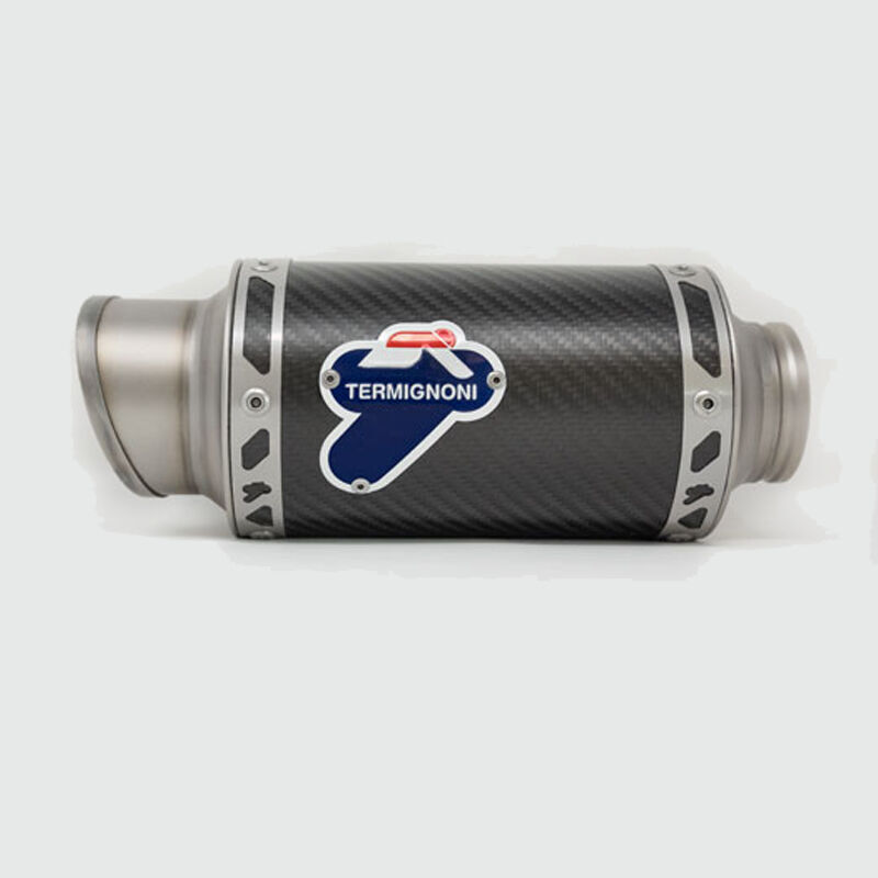 Riveted clamps and historic Termignoni logo for authentic race styling