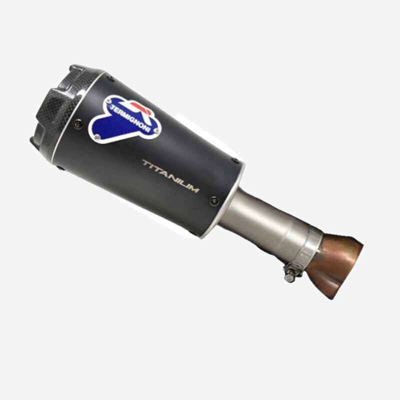 Constructed with a titanium-painted black sleeve and carbon-fibre end cap, the GP2R features Termignoni’s hexagonal grid outlet and aluminium riveted logo — hallmarks of its racing DNA. The integrated DB Killer ensures a deep, resonant exhaust note while maintaining manageability for track or sport riding use.