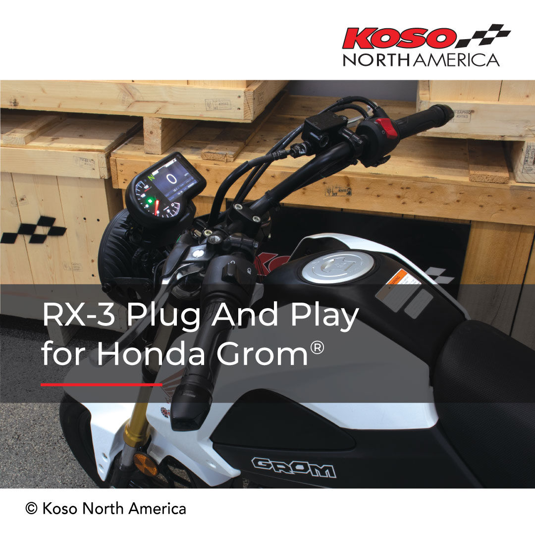 Koso has develop two connectors to make your life easier when installing your RX-3 on a Honda GROM®. We have a plug and play harness dedicated for this specific application.