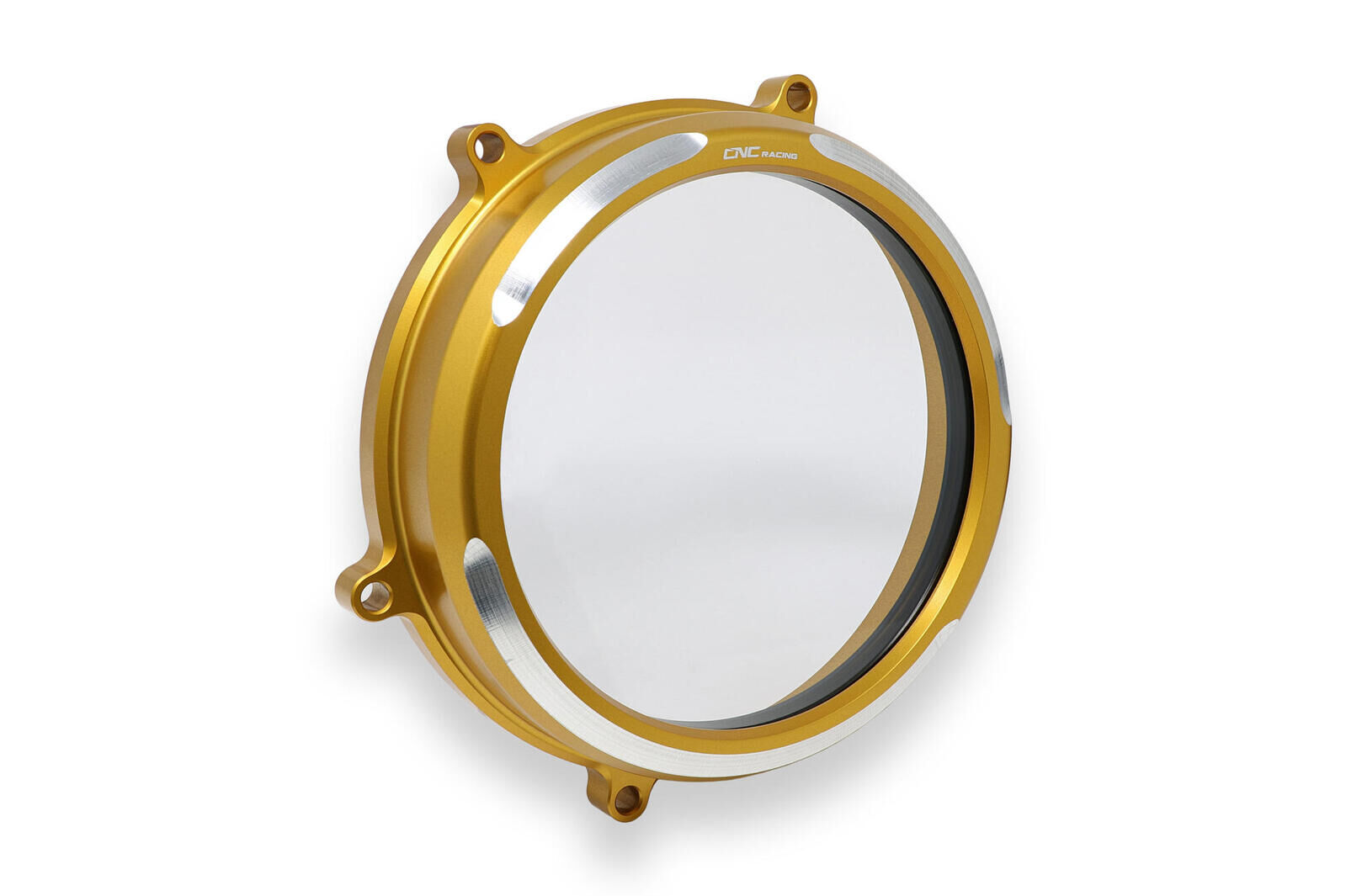 Clear oil bath clutch cover for Ducati Panigale, made in light alloy, machined from solid and then anodized.Transparency is obtained with a panel Lexan, resistant to shock and temperatures, while the watertightness is guaranteed by a specific O-ring.This version is characterized by a double CNC machining.Weight gr. 1,300Titanium screw set available as optional, code KV430X Please check Specifications for model compatibility.Delivery note: At Sportsbike, we offer a wide range of high-quality products, many of which are sourced directly from Europe. We have stock both in Australia and shipped in directly from Europe. Therefore, please allow 1-3 weeks for delivery. This ensures we can provide the best selection and service for your specific needs. We will confirm the ETA of shipping within 24-48 hours of an order being placed. Thank you for your understanding and patience!