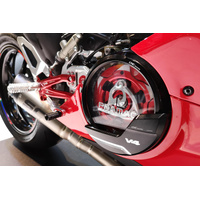 Clear oil bath clutch cover for Ducati Panigale V4, made in light alloy, machined from solid and then anodized.Transparency is obtained with a panel Lexan, resistant to shock and temperatures, while the watertightness is guaranteed by a specific O-ring.Weight gr. 1,300Titanium screw set available as optional, code KV430X Please check Specifications for model compatibility.Delivery note: At Sportsbike, we offer a wide range of high-quality products, many of which are sourced directly from Europe. We have stock both in Australia and shipped in directly from Europe. Therefore, please allow 1-3 weeks for delivery. This ensures we can provide the best selection and service for your specific needs. We will confirm the ETA of shipping within 24-48 hours of an order being placed. Thank you for your understanding and patience!