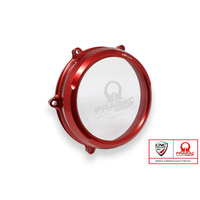 Clear oil bath clutch cover for Ducati Multistrada V4 and Diavel V4, made in light alloy, machined from solid and then anodized.Transparency is obtained with a panel Lexan, resistant to shock and temperatures, while the watertightness is guaranteed by a specific O-ring.Weight gr. 1,300Titanium screw set available as optional, code KV430XNOTICE: additional mandatory part CAB02N is not included in the kit and to be purchased separately. Please check Specifications for model compatibility.Delivery note: At Sportsbike, we offer a wide range of high-quality products, many of which are sourced directly from Europe. We have stock both in Australia and shipped in directly from Europe. Therefore, please allow 1-3 weeks for delivery. This ensures we can provide the best selection and service for your specific needs. We will confirm the ETA of shipping within 24-48 hours of an order being placed. Thank you for your understanding and patience!