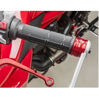 Handlebar weights CNC machined from light alloy billet and then given an anodized surface finish. The kit replaces the OEM parts without any modification.Kit consists of 2 pieces. Please check Specifications for model compatibility.Delivery note: At Sportsbike, we offer a wide range of high-quality products, many of which are sourced directly from Europe. We have stock both in Australia and shipped in directly from Europe. Therefore, please allow 1-3 weeks for delivery. This ensures we can provide the best selection and service for your specific needs. We will confirm the ETA of shipping within 24-48 hours of an order being placed. Thank you for your understanding and patience!