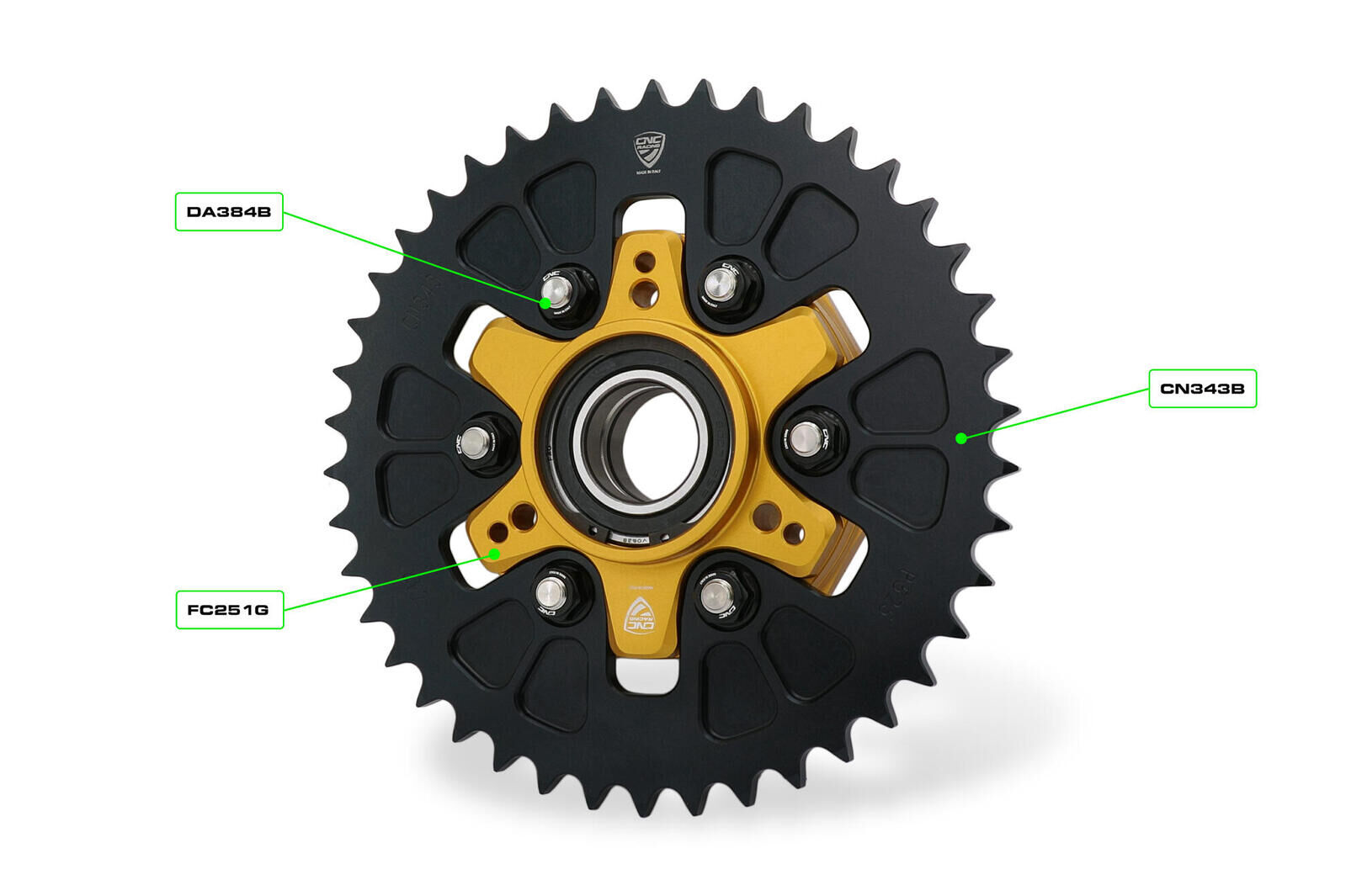 This model is compatible only with CNC Racing flange FC250/FC251, ensuring perfect fitment and straightforward installation without modification.