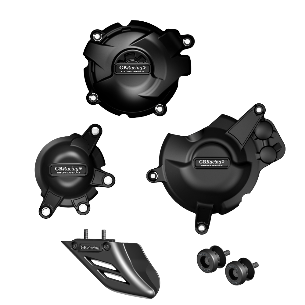 Race Developed Crash Protection from GBRacing Honda CBR1000RR Fireblade Engine Case Cover Crash Protection Bundle Includes Alternator / Generator / Stator case cover Gearbox / Clutch case cover Pulse / Timing case cover 8mm Paddock Stand / Swingarm Crash Bobbins Lower Chain Guard / Shark Fin Injection moulded using a revolutionary new tough high-impact composite material made from 60% Long Glass Fibered Nylon 6.6, these covers provide superior impact and wear protection both on the track and on the street. Easy installation - covers fit over existing aluminium engine case end with simple 3 or 4-point screw fixing (high quality replacement steel bolts and fitting instructions included). No messy glue or wire required. GBRacing crash protection can save you time, money, and a lot of hassle by: Helping keep your bike on the road or track and out of the workshop Reducing damage repair bills Reducing the likelihood of an insurance claim Helping to preserve the original condition of your bike Designed, race developed and manufactured in the U.K. Suitable for Honda CBR1000RR Fireblade 2017 - 2019 models only Part No. CP-CBR1000-2017-CS-GBR