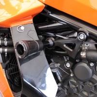 Race Developed Crash Protection from GBRacing KTM RC8 and RC8 R Frame Sliders / Crash Mushroom Set Includes Frame Sliders / Crash Mushrooms, Mounting Brackets, left and right Suitable for RC8 2008 - 2011 and RC8 R 2009 - 2015 models only Part No. CP-RC8-2008-SET-GBR