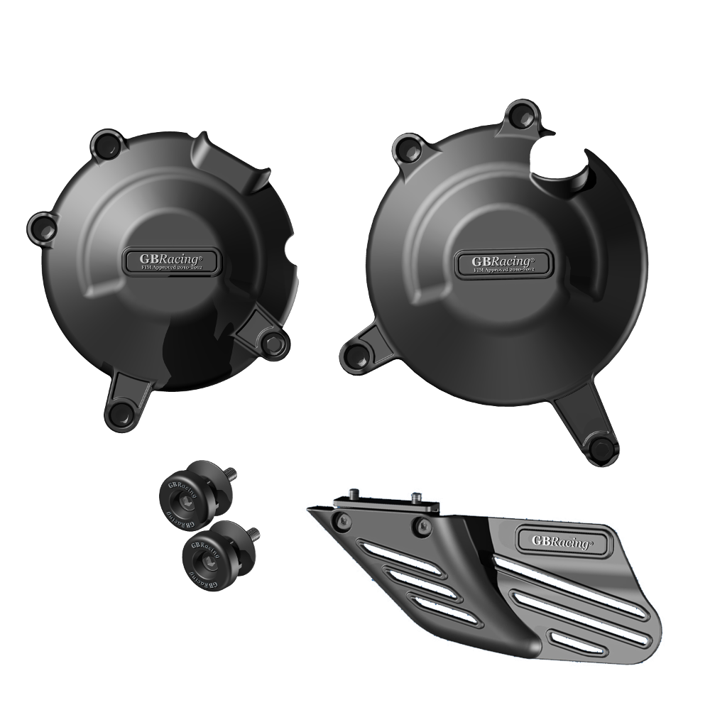 Race Developed Crash Protection from GBRacing Suzuki SV650 and SV650S Engine Case Cover Crash Protection Bundle includes Alternator / Generator / Stator case cover Gearbox / Clutch case cover 8mm Paddock Stand / Swingarm Crash Bobbins Lower Chain Guard / Shark Fin Injection moulded using a revolutionary new tough high-impact composite material made from 60% Long Glass Fibered Nylon 6.6, these covers provide superior impact and wear protection both on the track and on the street. Easy installation - covers fit over existing aluminium engine case end with simple 3 or 4-point screw fixing (high quality replacement steel bolts and fitting instructions included). No messy glue or wire required. GBRacing crash protection can save you time, money, and a lot of hassle by: Helping keep your bike on the road or track and out of the workshop Reducing damage repair bills Reducing the likelihood of an insurance claim Helping to preserve the original condition of your bike Designed, race developed and manufactured in the U.K. Suitable for SV650 and SV650S 2003 - 2012 models only Part No. CP-SV650-1999-CS-GBR