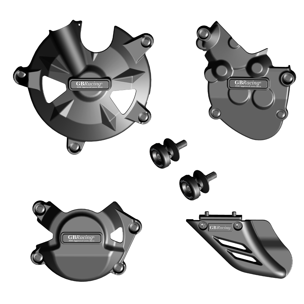 Race Developed Crash Protection from GBRacing Kawasaki Ninja ZX-10R 2008 - 2010 Engine Case Cover Crash Protection Bundle includes Alternator / Generator / Stator case cover Gearbox / Clutch case cover Pulse / Timing case cover 10mm Paddock Stand / Swingarm Crash Bobbins Lower Chain Guard / Shark Fin Injection moulded using a revolutionary new tough high-impact composite material made from 60% Long Glass Fibered Nylon 6.6, these covers provide superior impact and wear protection both on the track and on the street. Easy installation - covers fit over existing aluminium engine case end with simple 3 or 4-point screw fixing (high quality replacement steel bolts and fitting instructions included). No messy glue or wire required. GBRacing crash protection can save you time, money, and a lot of hassle by: Helping keep your bike on the road or track and out of the workshop Reducing damage repair bills Reducing the likelihood of an insurance claim Helping to preserve the original condition of your bike Designed, race developed and manufactured in the U.K. Suitable for Kawasaki Ninja ZX-10R 2008 - 2010 models only Part No. CP-ZX10-2008-CS-GBR