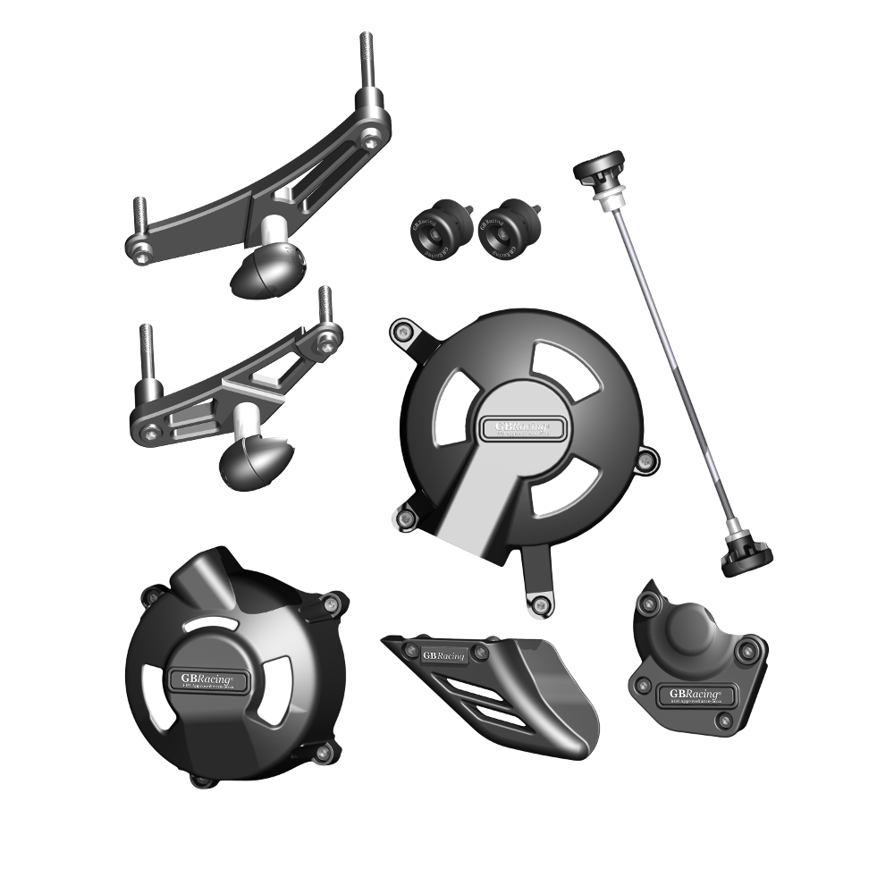 Race Developed Crash Protection from GBRacing Triumph Daytona 675 Street Triple / R Engine Case Cover Crash Protection Bundle (Street) includes Alternator / Generator / Stator Case Cover Clutch / Gearbox Case Cover Pulse / Timing Case Cover Bullet Frame Sliders, left and right (Street) 6mm Paddock Stand / Swingarm Crash Bobbins Front Axle Bobbins Lower Chain Guard / Shark Fin Injection moulded using a revolutionary new tough high-impact composite material made from 60% Long Glass Fibered Nylon 6.6, these covers provide superior impact and wear protection both on the track and on the street. Easy installation - covers fit over existing aluminium engine case end with simple 3 or 4-point screw fixing (high quality replacement steel bolts and fitting instructions included). No messy glue or wire required. GBRacing crash protection can save you time, money, and a lot of hassle by: Helping keep your bike on the road or track and out of the workshop Reducing damage repair bills Reducing the likelihood of an insurance claim Helping to preserve the original condition of your bike Designed, race developed and manufactured in the U.K. Suitable for Triumph Daytona 675 Street Triple / R 2006 - 2010 models with plain (not Triumph embossed) engine casings only NB. Some 2010 models require 8mm Bobbins; please check before ordering and, if necessary, order the Crash Protection Bundle with 8mm bobbins. Part No. CP675-CS-GBR