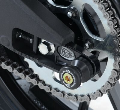 Due to the position of the cotton reel on the bracket, these protectors give protection to the swingarm area and the bike can be lifted using a paddock stand.