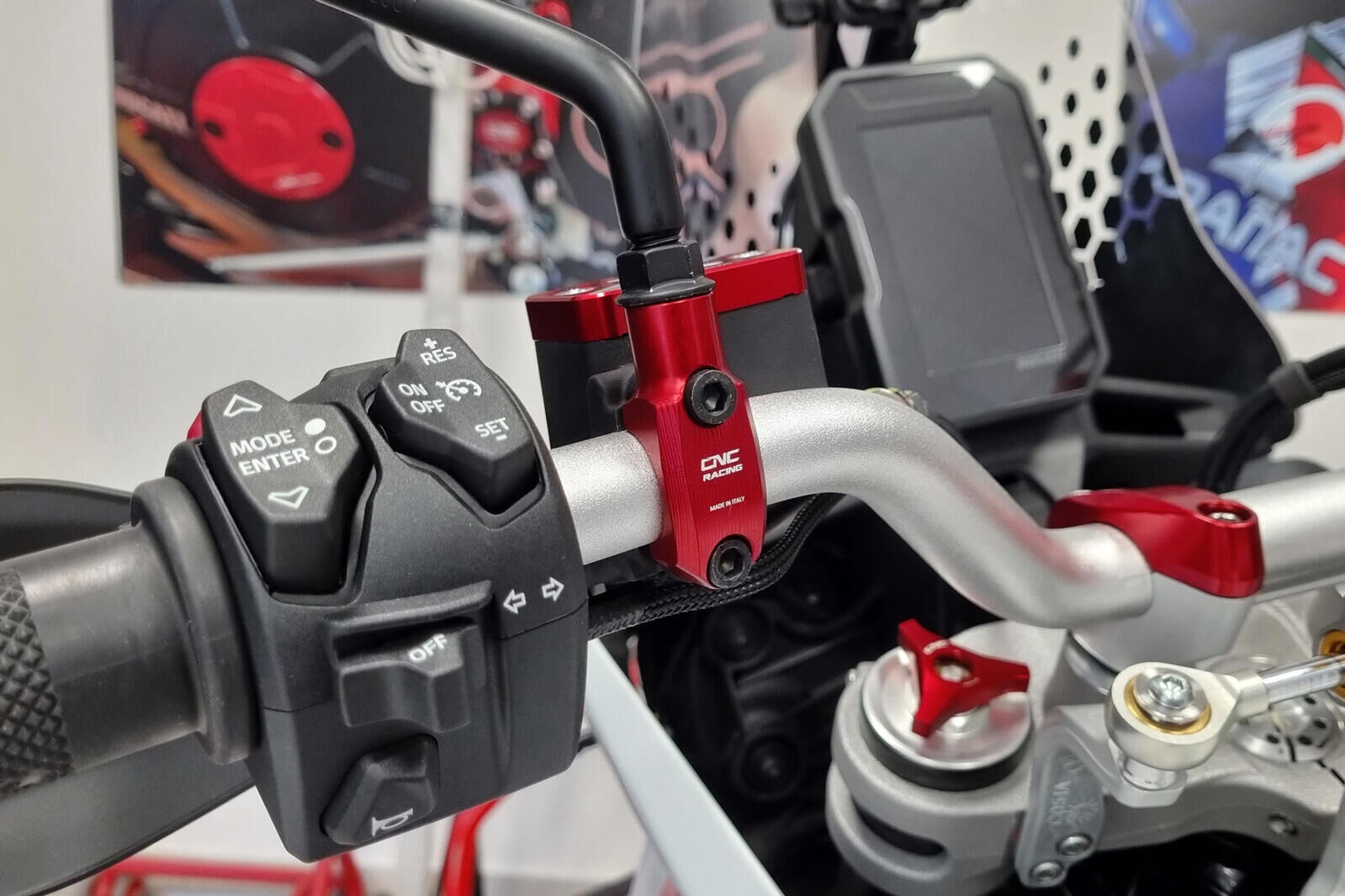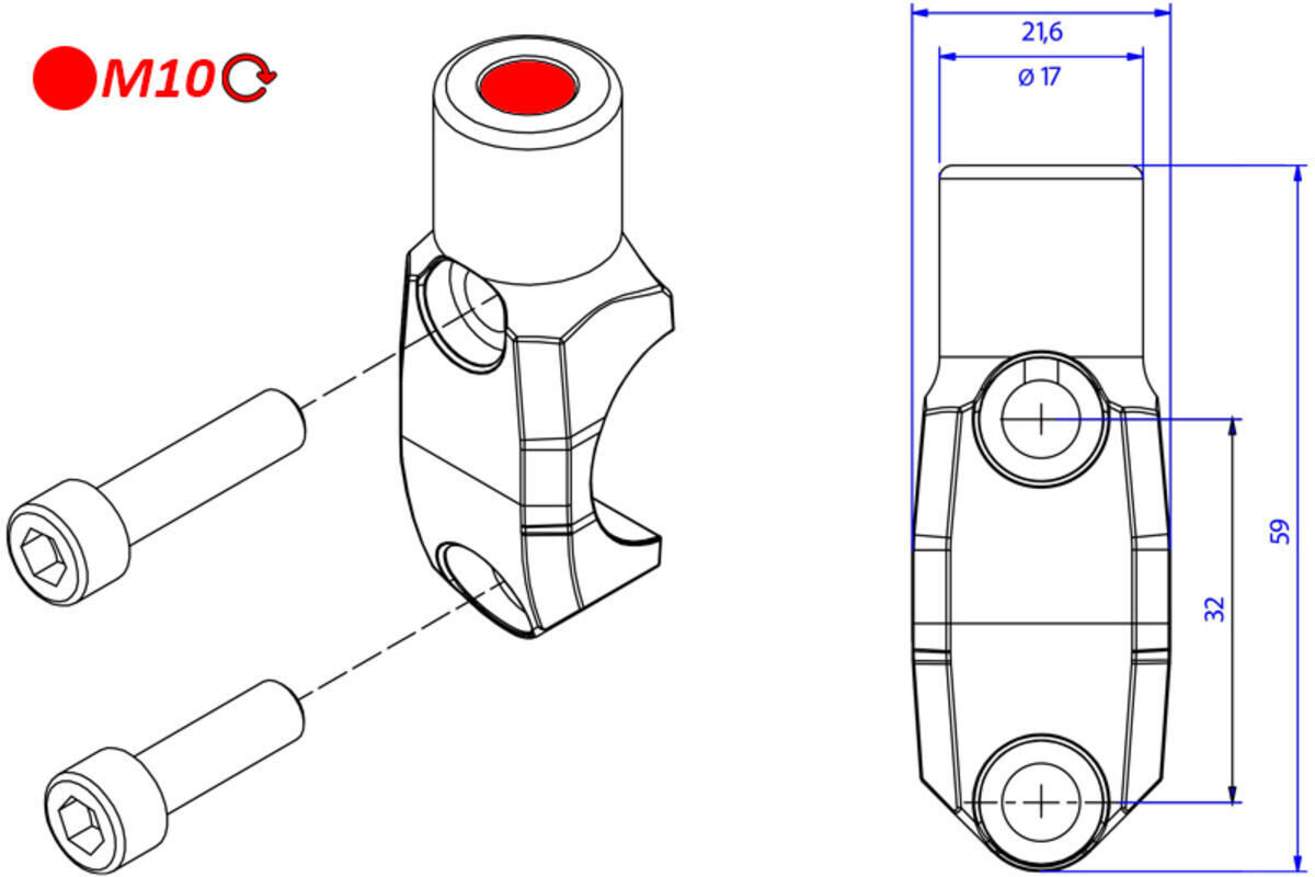 OEM and RCS Brembo brake or clutch master cylinder clamp with mirror mount thread M10 right, made in light alloy, machined from solid and then anodized.Kit is composed by one clamp, Two black finished galvanized screws are included.Titanium screw set available as optional, code KV427X Please check Specifications for model compatibility.Delivery note: At Sportsbike, we offer a wide range of high-quality products, many of which are sourced directly from Europe. We have stock both in Australia and shipped in directly from Europe. Therefore, please allow 1-3 weeks for delivery. This ensures we can provide the best selection and service for your specific needs. We will confirm the ETA of shipping within 24-48 hours of an order being placed. Thank you for your understanding and patience!