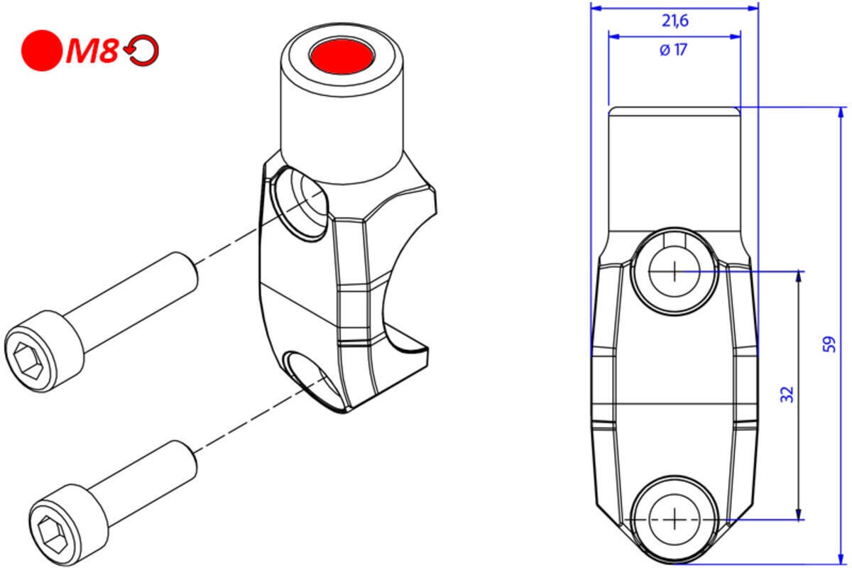 Product Type: Brake or clutch master cylinder clamp with M8 counter-clockwise (left-hand) mirror mount