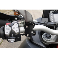 CNC Racing clutch control clamp with mirror mount, precision machined from solid light alloy billet and finished with a durable anodized surface. Designed to replace the OEM clamp, it offers improved strength, reduced weight, and a race-inspired look while maintaining perfect fitment and function.