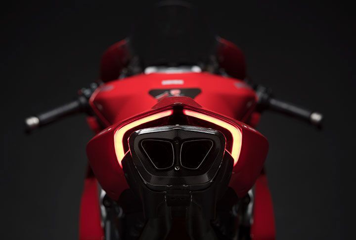 4-exit layout improves gas flow and gives the Panigale V4 a distinctive race appearance