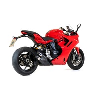 Termignoni introduces a new homologated silencer designed for Ducati Supersport 950.Double silencer built with carbon end caps and titanium outer sleeve to save weight.This titanium alloy processing allows considerable weight savings and high resistance to high temperatures.