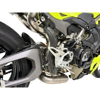 BRAND: Termignoni SKU: D24209400ITCTermignoni has developed a pair of RACING SOTTOCODA mufflers to fit the original front headers. Installation of this semi-complete kit requires removing the catalytic converter from the motorcycle's exhaust system and the rear header pipe. The kit includes a connecting pipe. The mufflers are made of stainless steel with a titanium sleeve, titanium clamps, and carbon fiber front and rear endcaps.