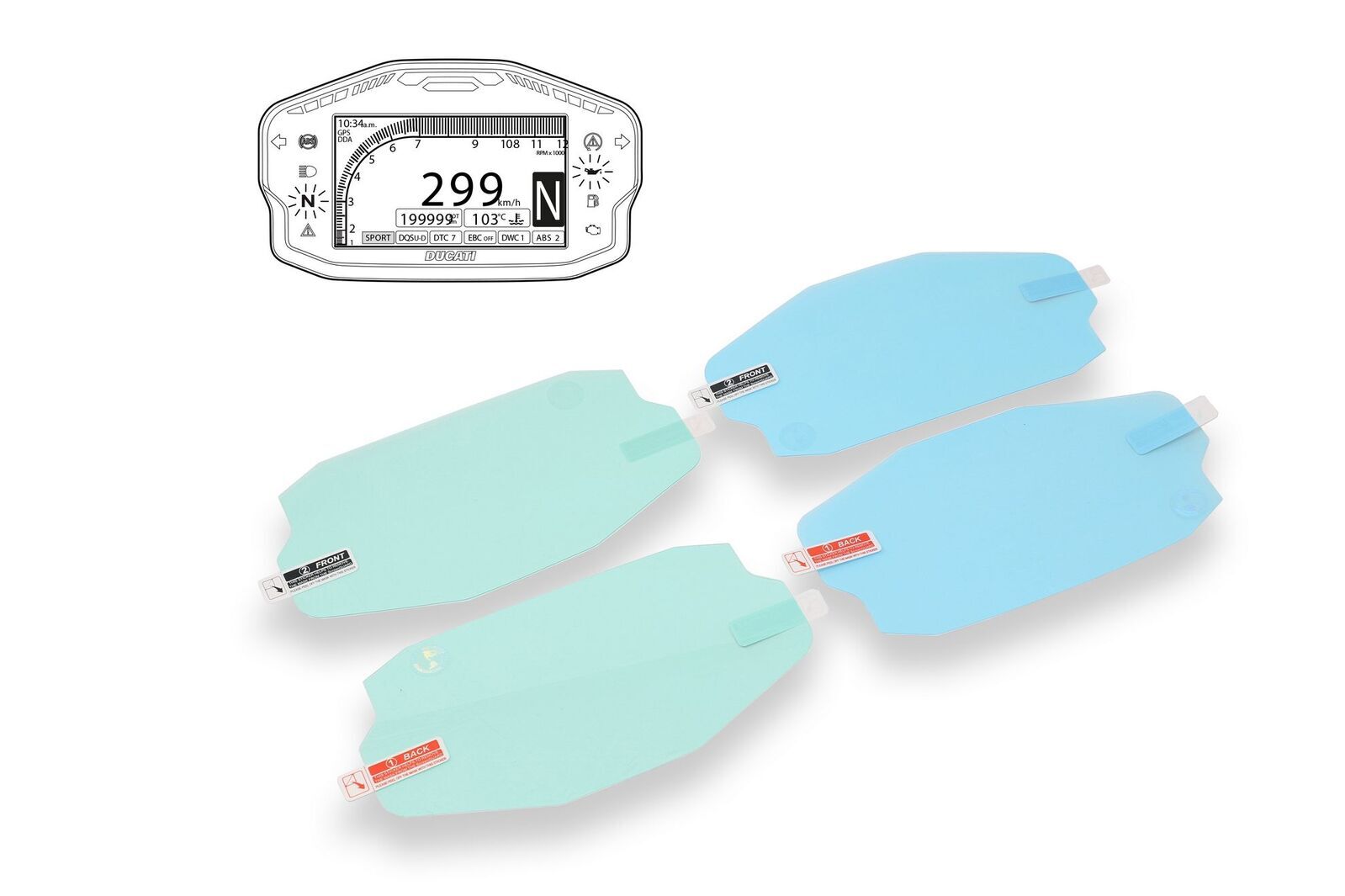 CNC Racing instrument protection film kit designed to protect your motorcycle’s dashboard from scratches, dust, and glare while maintaining perfect visibility and display clarity.