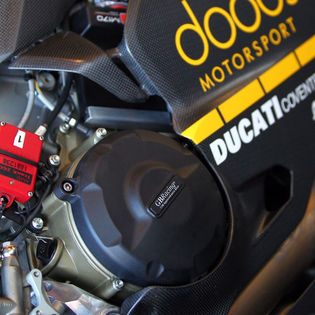 Race Developed Crash Protection from GBRacing Ducati 1199 1299 Panigale Secondary Engine Case Cover Set includes Alternator / Generator / Stator case cover Gearbox / Clutch case cover Injection moulded using a revolutionary new tough high-impact composite material made from 60% Long Glass Fibered Nylon 6.6, these covers provide superior impact and wear protection both on the track and on the street. Easy installation - covers fit over existing aluminium engine case end with simple 3 or 4-point screw fixing (high quality replacement steel bolts and fitting instructions included). No messy glue or wire required. GBRacing crash protection can save you time, money, and a lot of hassle by: Helping keep your bike on the road or track and out of the workshop Reducing damage repair bills Reducing the likelihood of an insurance claim Helping to preserve the original condition of your bike Designed, race developed and manufactured in the U.K. Suitable for Ducati 1199 and 1299 Panigale 2011 - 2019 models only Part No. EC-1199-2012-SET-GBR