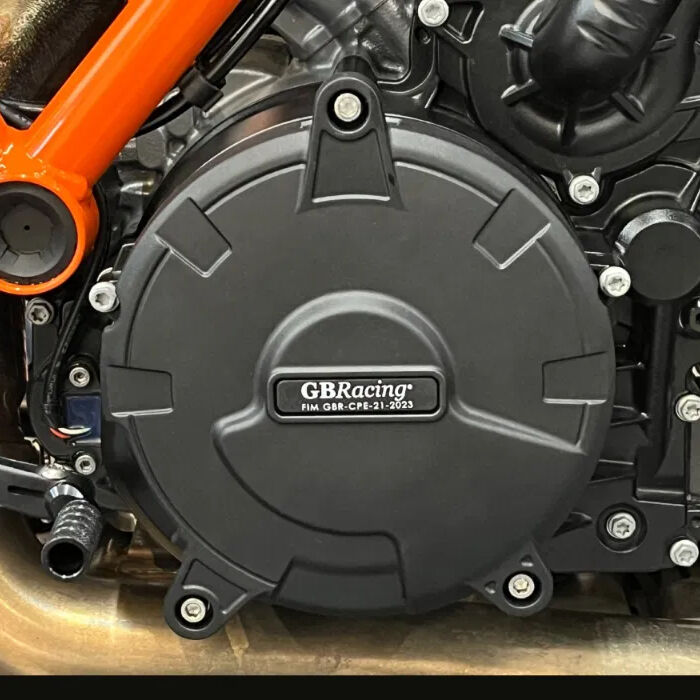 Race Developed Crash Protection from GBRacing KTM 1390 Super Duke R Secondary Engine Case Cover Set    includes Alternator / Generator / Stator case cover Gearbox / Clutch case cover Suitable for 1390 Super Duke R 2024 – current models only Part No. EC-1390-2024-SET-GBR