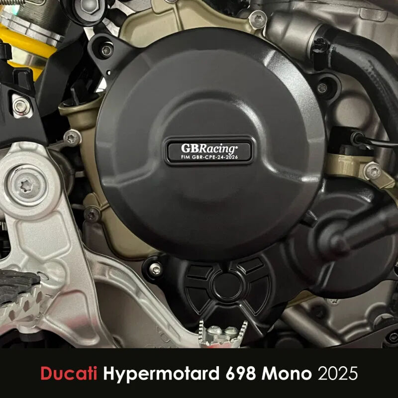 Race Developed Crash Protection from GBRacing Ducati Hypermotard 698 Mono Secondary Clutch Case Cover    includes Gearbox / Clutch case cover Part No. EC-698-2024-2-GBR Model compatibility Ducati Hypermotard 698 Mono 2024 - current