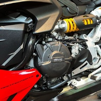 Race Developed Crash Protection from GBRacing Ducati Streetfighter V2 Secondary Engine Case Cover Set Includes Alternator / Generator / Stator case cover Gearbox / Clutch case cover Injection moulded using a revolutionary new tough high-impact composite material made from 60% Long Glass Fibered Nylon 6.6, these covers provide superior impact and wear protection both on the track and on the street. Easy installation - covers fit over existing aluminium engine case end with simple 3 or 4-point screw fixing (high quality replacement steel bolts and fitting instructions included). No messy glue or wire required. GBRacing crash protection can save you time, money, and a lot of hassle by: Helping keep your bike on the road or track and out of the workshop Reducing damage repair bills Reducing the likelihood of an insurance claim Helping to preserve the original condition of your bike Designed, race developed and manufactured in the U.K. Suitable for Ducati Streetfighter V2 2022 - current models only Part No. EC-V2-SF-2022-SET-GBR