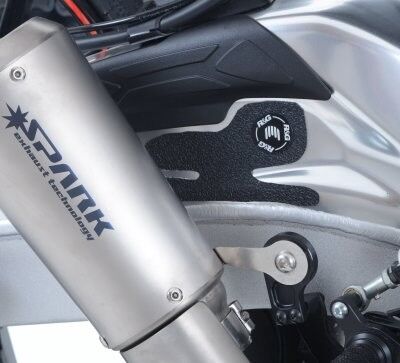 The unique R&G texture was specifically designed to be durable, providing the rider with a buffer between his boot on the exposed areas of the swingarm which can (on occasion) come into contact with each other during cornering causing wear and unwanted damage to the swingarm or boots (both expensive to fix!).