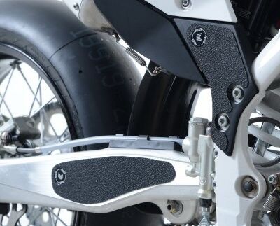 The unique R&G texture was specifically designed to be durable, providing the rider with a buffer between his boot on the exposed areas of the swingarm which can (on occasion) come into contact with each other during cornering causing wear and unwanted damage to the swingarm or boots (both expensive to fix!).