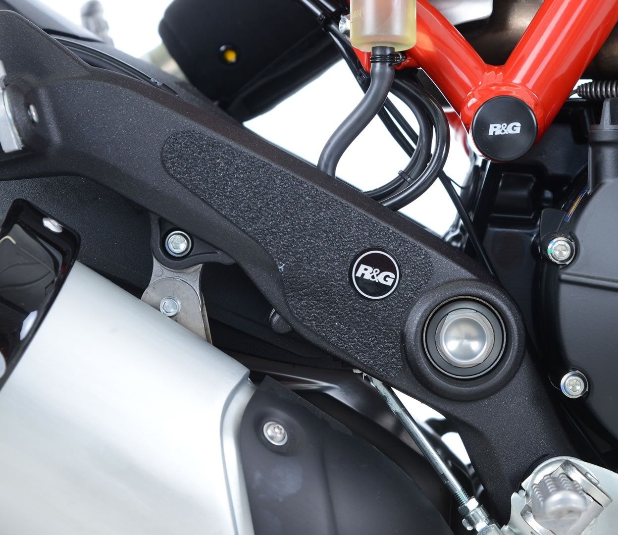 The unique R&G texture was specifically designed to be durable, providing the rider with a buffer between his boot on the exposed areas of the swingarm which can (on occasion) come into contact with each other during cornering causing wear and unwanted damage to the swingarm or boots (both expensive to fix!).