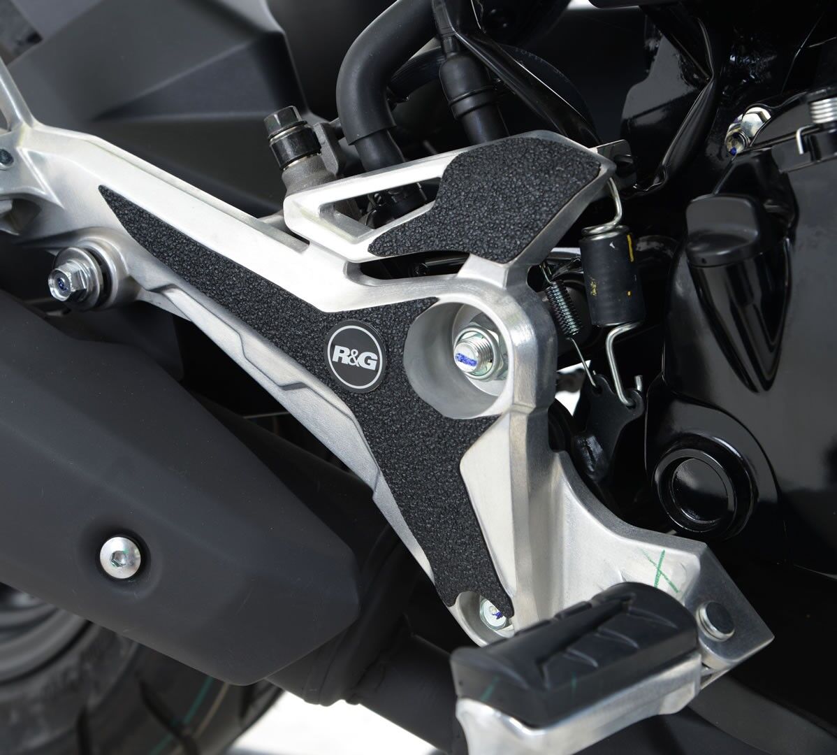 The unique R&G texture was specifically designed to be durable, providing the rider with a buffer between his boot on the exposed areas of the swingarm which can (on occasion) come into contact with each other during cornering causing wear and unwanted damage to the swingarm or boots (both expensive to fix!).