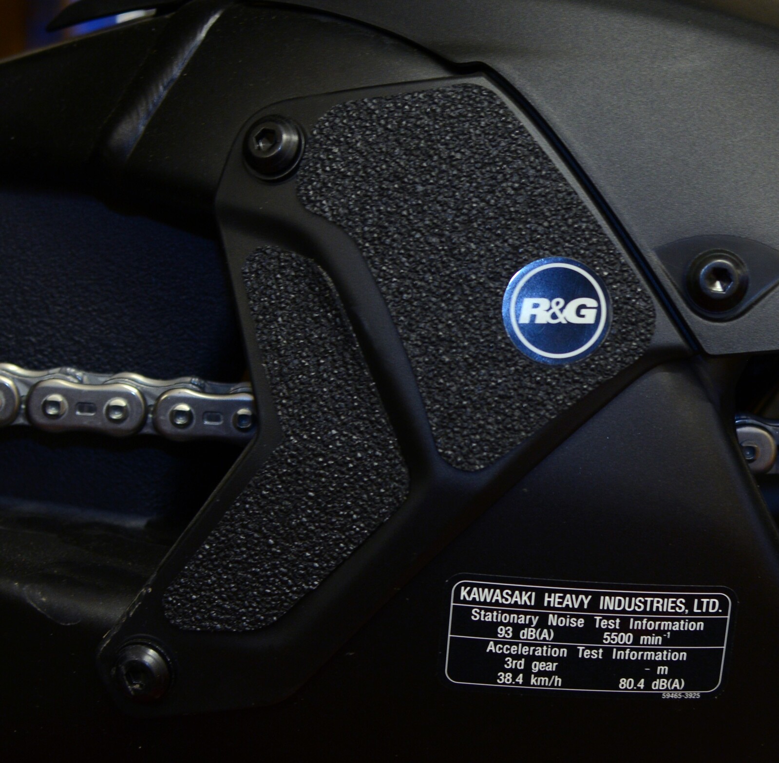 The unique R&G texture was specifically designed to be durable, providing the rider with a buffer between his boot on the exposed areas of the swingarm which can (on occasion) come into contact with each other during cornering causing wear and unwanted damage to the swingarm or boots (both expensive to fix!).