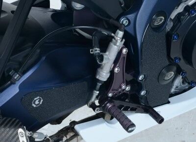 The unique R&G texture was specifically designed to be durable, providing the rider with a buffer between his boot on the exposed areas of the swingarm which can (on occasion) come into contact with each other during cornering causing wear and unwanted damage to the swingarm or boots (both expensive to fix!).