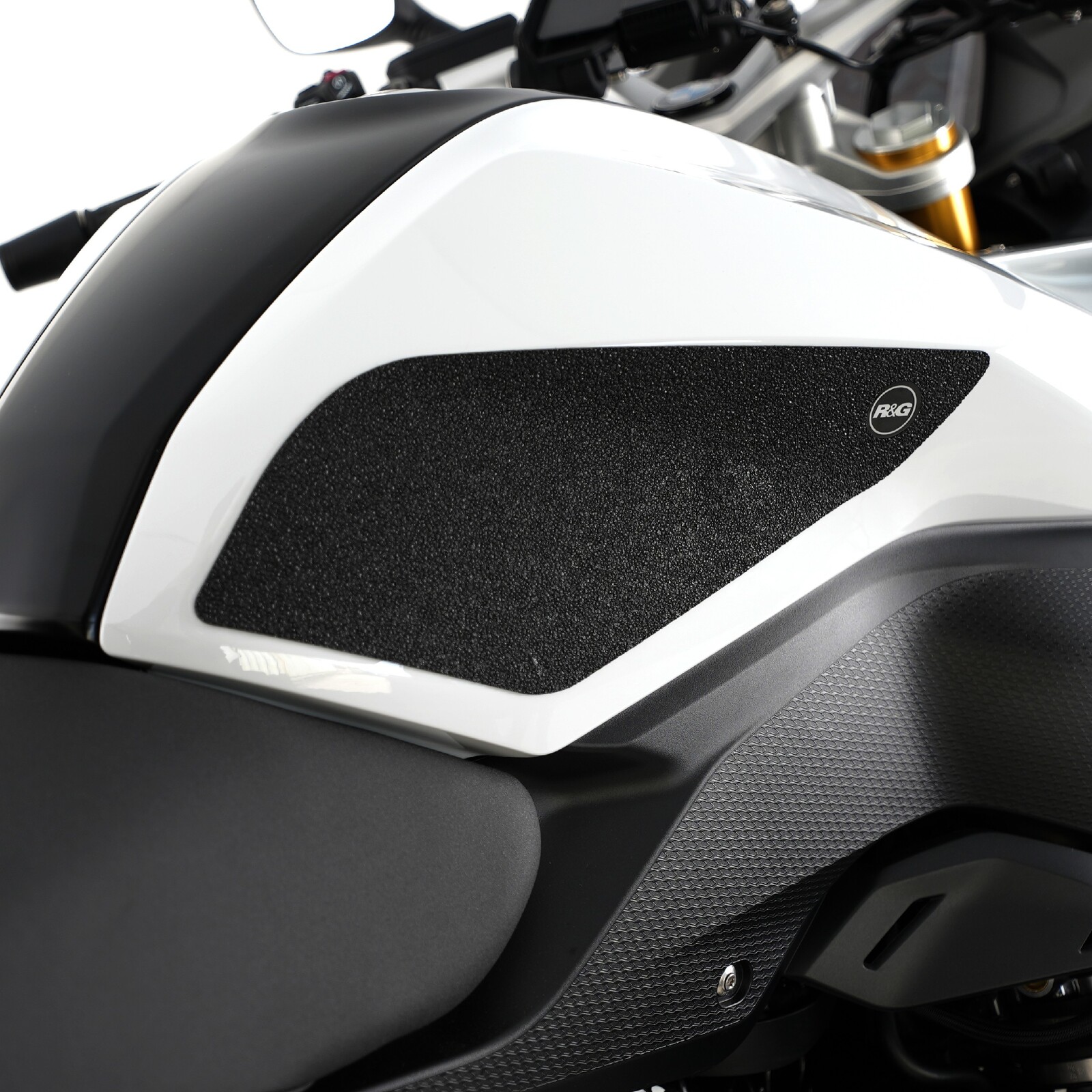 The unique R&G tank traction grip texture was specifically designed to be both soft and durable, providing the rider with the grip and feel he/she needs to assist in better bike control, enabling the rider to maintain a stable body position while cornering and braking, whilst also relieving fatigue and providing the rider with complete confidence allowing him/her to fully focus on the road (or track) ahead instead of slipping and sliding on the tank.