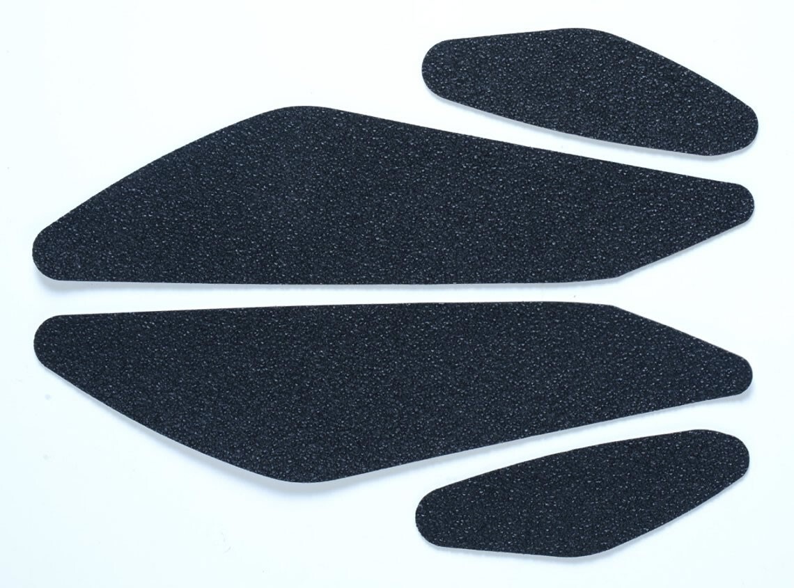 Each tank traction grip kit is supplied with precision pre-cut adhesive pieces, designed to fit the intended bike, typically in either 2, 4 or 6 pieces (in total) depending on the shape of the tank and adjoining fairing.