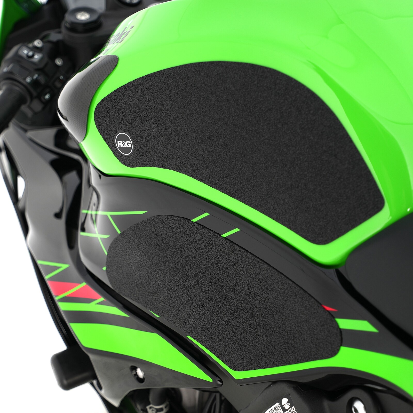 The unique R&G traction grip texture was specifically designed to be both soft and durable, providing the rider with the grip and feel he/she needs to assist in better bike control, enabling the rider to maintain a stable body position while cornering and braking, whilst also relieving fatigue and providing the rider with complete confidence allowing him/her to fully focus on the road (or track) ahead instead of slipping and sliding on the tank.