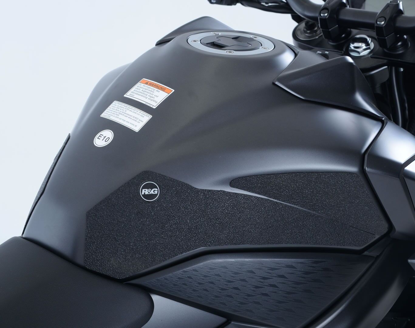 The unique R&G traction grip texture was specifically designed to be both soft and durable, providing the rider with the grip and feel he/she needs to assist in better bike control, enabling the rider to maintain a stable body position while cornering and braking, whilst also relieving fatigue and providing the rider with complete confidence allowing him/her to fully focus on the road (or track) ahead instead of slipping and sliding on the tank.